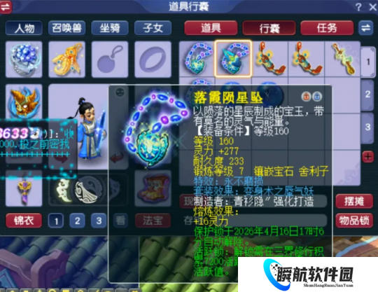 160伯牙绝弦项链。特技是好特技,法系放下也是现版本PK必带的特技之一,就是灵力稍微有点低。