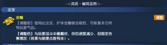 2、无底洞金蟾调整,固伤流派携带该法宝,速度减少,固伤增加。
