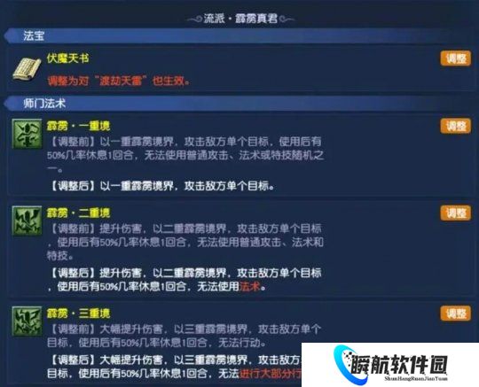 上次门派重做的力天宫霹雳真君流派,力天宫的单体技能和飞秒技能,无论是使用几重境,都有50%几率休息。