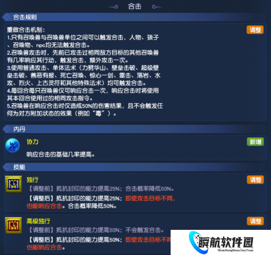 往后只有召唤兽单位会合击,效果相当于多打一次追击。且合击对物理攻击和单法都生效,还能触发连击和法术连击。