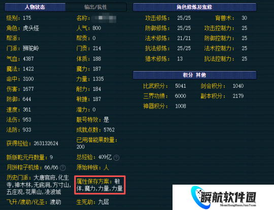 大家要知道,对于175来讲转一次门派就是1000大洋,有了历史门派后续自己就有了更多的选择;同样的,有些号虽然历史门派很多,但是由于粗心大意或者其他历史属性保存不全面,这样的号虽然有历史门派,但是属性不对,历史门派就没有了意义!还拿上面这个号来做说明,他的历史属性保存就非常有讲究。辅助属性(敏体)、法系属性(全魔)、物理属性(力量)他都有,除了一个全敏的任务固伤属性外,他全部都有。当然,力量是两个也是有原因的,那就是可以可以搞一套全力的任务和一套敏体的PK,这样更方便。