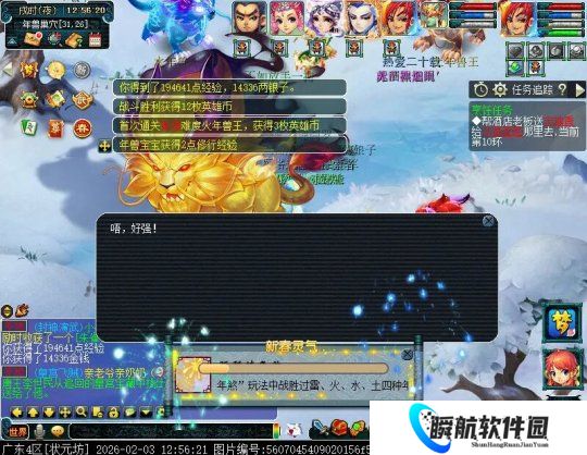 2月3日12:00,新春活动已在全服放出,若大家想放大活动奖励的话,先到活动人处领取年兽宝宝,选择第三个选项,到酒店指定坐标处使用道具栏里的蛋糕,年兽宝宝会出现,对话后获得奖励,这样还能节省一个摄妖香,然后点击年兽,让它自己去游玩(帮你赚宝箱奖励),咱再参与其他玩法。