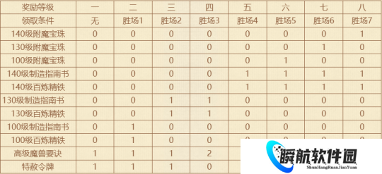 少侠积极参与比赛,完成11个赛事任务就能解锁“高级魔兽要诀”奖励:报名赛事、获得首胜、选拔赛8场全勤、选拔赛第1~8轮中分别获胜。最终根据点亮的印章数量领取以下奖励: