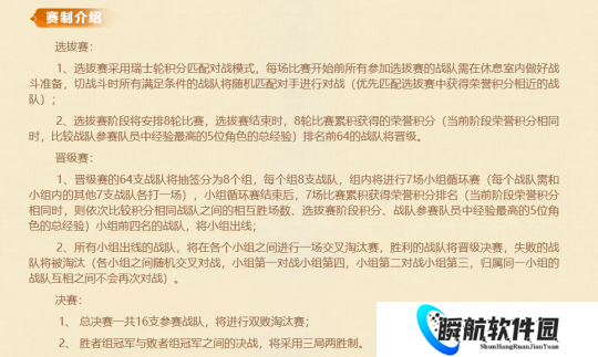 1、选拔赛:一共有8场比赛,每场随机匹配,结束时累计荣誉积分排名前64的战队进入下一轮。