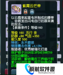 任务圈子再添一件物理系神器:新出160级腰带,永不磨损特效加持,绿字物理暴击伤害高达4.13%。这条集实用与爆发于一体的腰带,将成为物理系玩家的竞速追求。