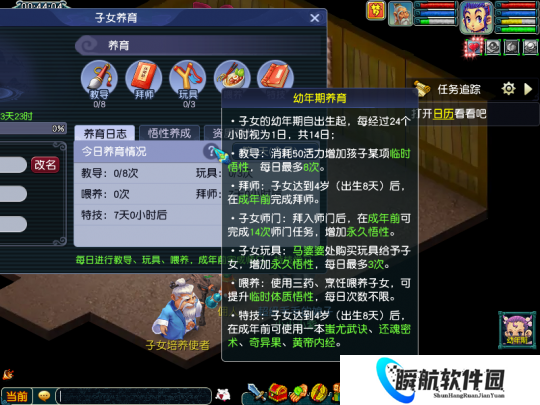 完成14个师门任务,并且额外获得两项永久属性。拜师后会获得1个师门技能,同时可以学习特技技能,拜师、师门任务、特技学习均需在成年前完成。