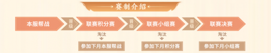 帮派联赛分为4个阶段组成:本服帮战→联赛积分赛→联赛小组赛→联赛决赛。