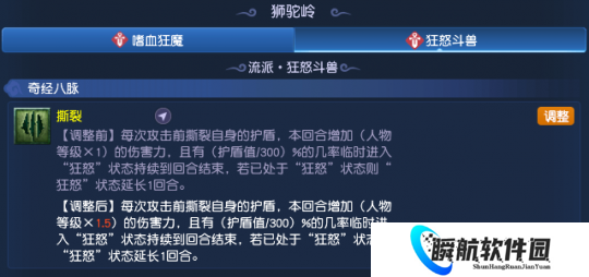 本次调整中,狮驼岭调整了【嗜血狂魔】、【狂怒斗兽】流派部分奇经八脉效果。