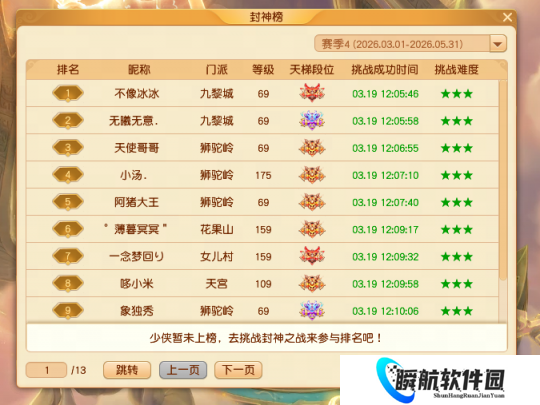 2026年3月19日12:00,“封神演武·第四赛季”的“封神之战”已正式开启!在“封神演武·5v5排位赛”中达到“超凡战神”段位的玩家可邀请4名队友组队前往封神台(30,71)雷震子处接受挑战。挑战成功后,玩家可按名次领取对应的道具奖励,前五十名更可必得130附魔宝珠!完成“封神之战”后还可开启新赛季的“荣耀之路”,赢取本赛季限定外观,包括竞技秀框“踏虹追光”、战斗入场特效“冲云·牛斗”、战斗高光播报“冲云·凯歌”!