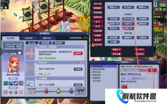回归第一步,奖励直接送到手。登录游戏立刻解锁秘制红罗羹、秘制绿芦羹、400仙玉头像框(7天)(三选一随机送),日常任务、抓鬼、副本回血回蓝不用愁,省去买药开销。随机的头像框,让你的角色头像在队伍里瞬间有辨识度,回归就有新面貌。不用做前置任务、领取礼包码后进入游戏,按“ALT+S"选择"礼包中心-序列号兑换",输入你的专属礼包码,即可领取礼包,助你回归后,以更好的状态应对你的每个回合。