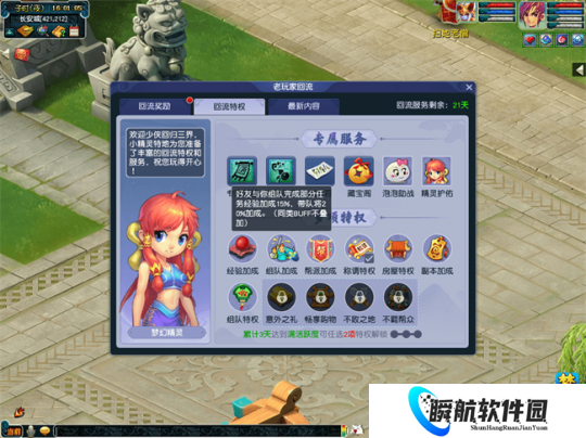除此之外,各位还可享受游戏内的回流好礼,在基础专属特权上,回流少侠可解锁专属酒肆、专属巫医等便捷服务,日常游戏更省心;同时可免费领取多张临时符,还能享受泡泡助战、精灵护佑等战斗助力,每日首次阵亡不会受到任何损失,战斗探索更安心。除通用特权外,还可自由选择经验加成、组队加成、帮派加成、房屋特权、副本加成等特权,量身定制专属回流体验,无论是想快速升级追进度,还是想和好友组队刷本、扎根帮派,都能找到适配的福利加持,让回归后的三界之旅更自在、更畅快。