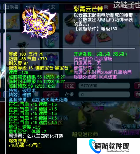 这是一条160级愤怒破甲腰带,镶嵌16段宝石,熔炼额外提升了16点防御与40点气血。