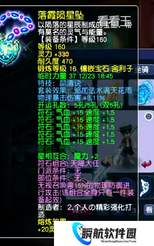 这是一条160级项链,16锻+熔炼总灵力高达350点,附带特技“晶清诀”与3.11%的物理暴击伤害属性。