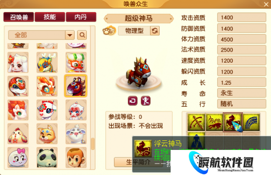 作为生肖神兽,超级神马通过其专属技能浮云神马,在PVP中大放异彩,它是场上绝对的速度保证。