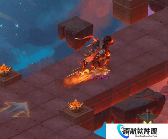 c. 处于“坐骑冲刺”状态时,进入“星芒之海”或“魔焰之地”场景指定区域(首领雕像前)后将触发“自动跳跃”,跳跃结束后继续向前方冲刺。