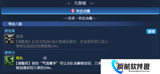 九黎城方面,则是用“同仇”经脉替换了之前的“族魂”。调整之后,九黎城可以使用“气荡寰宇”为队友解封。