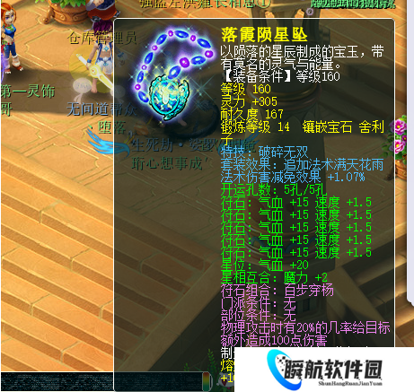 现在的版本弱点就很受欢迎,因为花果山比较强,而九黎和狮驼厉害的版本,破碎就受欢迎。这条160级的项链是一条很极品的破碎项链,打了14段舍利子,灵力有305,熔炼后灵力315。然后有2个蓝字,一个是破碎无双,可以既打对方气血又打对方蓝量;另一个是法术伤害减免效果+1.07%,这对防法系和须弥也有很好的效果。