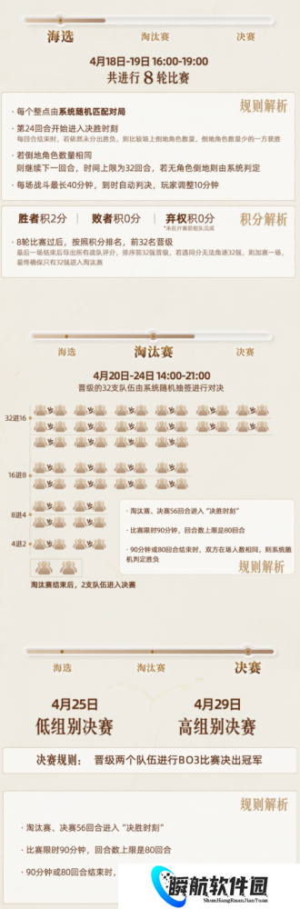 2.“决胜时刻”持续时间自第56回合起(海选赛为24回合),持续至第80回合或战斗结束(海选赛为32回合)