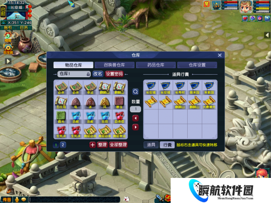 10、“仓库”、“行囊”中同类物品的整理规则优化: