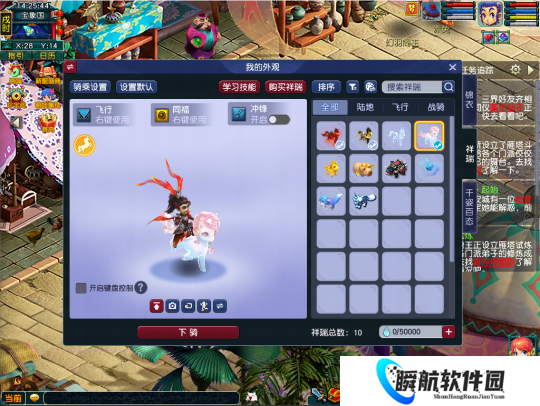 9、“祥瑞(Alt+U)”界面的矩阵列表显示优化,设置了“默认飞行祥瑞”、“默认战骑”的祥瑞将显示额外标识,方便玩家快速识别。