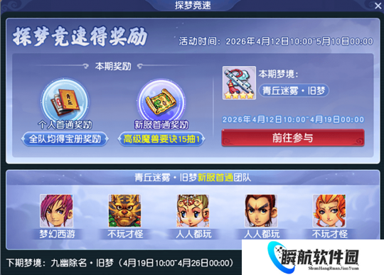 每台“天地逍遥”系列服务器内第一个通关当期开放梦境的团队,其成员均必得高级魔兽要诀。
