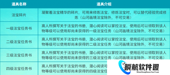 “天地逍遥”系列服务器中,为优化少侠前期的法宝系统养成体验,将增加以下专属道具: