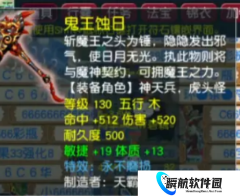 以及一把命中512、伤害520、附带敏捷耐力双加与永不磨损特性的130级锤子。