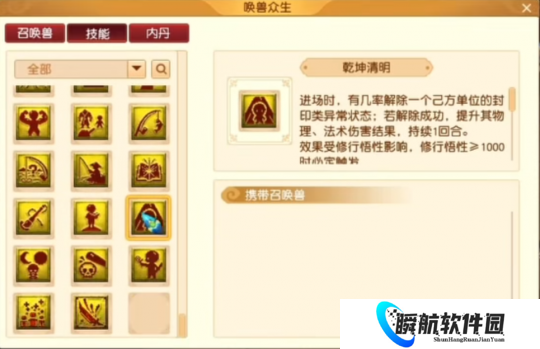 乾坤清明:有几率解除己方一个单位的封印异常状态。当孩子修行悟性达到1000时,该效果必定触发。在解封药紧缺时,召唤此孩子可解燃眉之急。