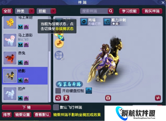 女角色骑乘 “赤兔”“绝影”“的卢”,可以自由切换跨坐和侧坐!