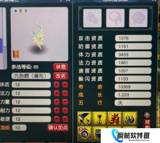 这种胚子一看就是全新炼妖出来的,因为有2个东西实在是太新了。如果不是你天天看,可能都不太能认识。胚子是新出的九色鹿,这个是给69级精锐玩家用的。因为它是一个8技能的,然后还带了特殊技能的,那就是诸天正法。