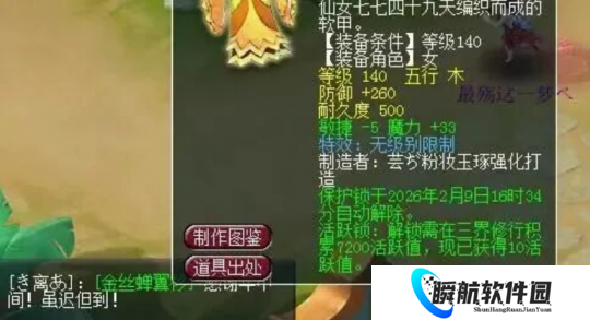 玩家鉴定出了一件140级无级别女衣,属性为单魔+33,防御266。