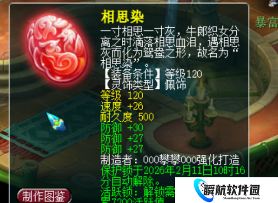 玩家鉴定出了一件120级佩饰,主属性为26速度,附加三条防御属性。