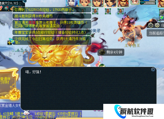 关于年兽挑战,下面是英雄难度的奖励,钱依然少得可怜,就是英雄币多一点,建议日常要刷5个太清符的玩家,优先选择打火年兽,接上罗汉就稳了。