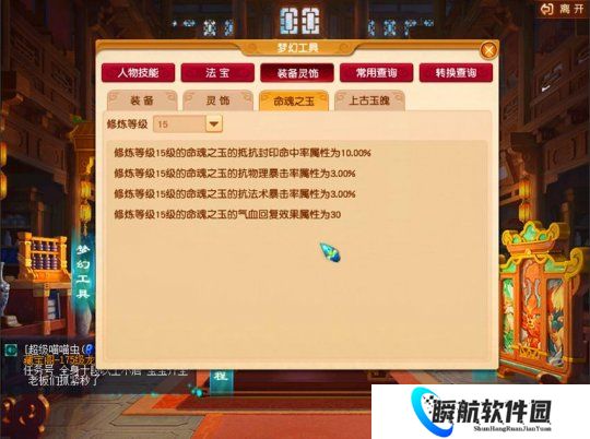 梦幻中大多数玩家的命魂之玉是抗封印命中率,修满层以后能够增加10%的抗封印命中。