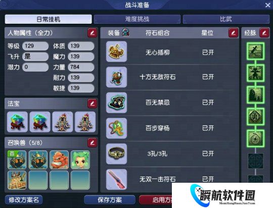 1)角色等级≥69级时,人物属性界面新增“战斗准备”按钮,汇总查看人物属性、法宝、召唤兽、装备、奇经八脉等战斗相关信息,便于玩家快速调整配置,做好战斗准备;