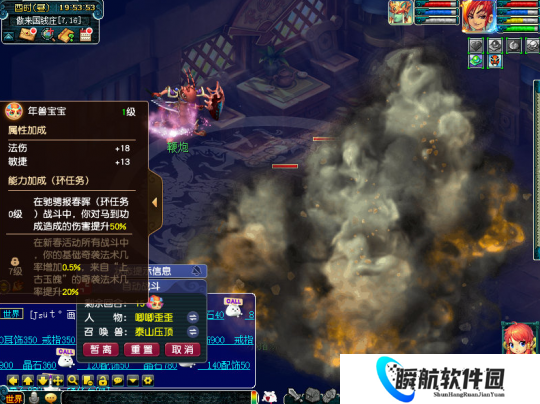 此外,年兽宝宝会在战斗界面的左侧探出头来,点击可以看到属性加成。