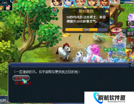 接取到这类任务时,玩家可以利用各个场景地图中的快马加速抵达目的地,前半段是自动加速过去的,后半段就恢复了正常速度。若不使用快马,那就得用飞行祥瑞,否则大概率无法达成激励任务,快马所处位置如图。