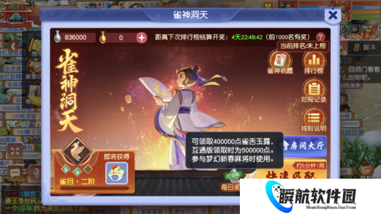 少侠若是赢了还能获得雀神积分,每周积分排行1-4名的少侠可以获得永久黄金幺鸡头套和特色限时称谓“雀神”。