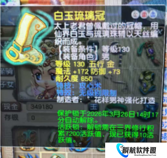 这件头盔不仅拥有无级别特效,让低级别玩家也能轻松穿戴,还携带了攻心术特技。攻心术可降低对手的法防属性,是限制对手的战略性特技,在高端PK中往往能起到一锤定音的效果。