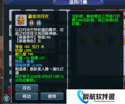 玩家鉴定出一件160级简易、穿刺、力敏双加53的女衣。天启女衣狂喜,这下能更好打PK。