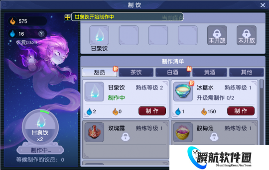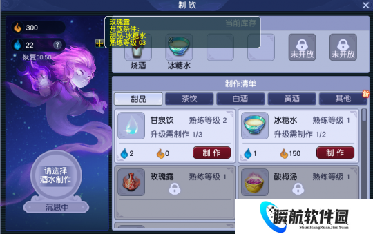 制作饮品补充库存后,可运送饮品完成订单,完成订单后可获得情思。不断制作同一种饮品可提升该饮品熟练等级,从而解锁更高级的饮品。