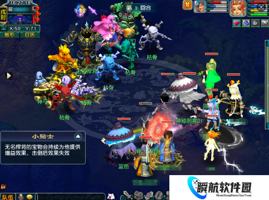 无名悍将BOSS是大唐,后排4个小怪会给它提供增益效果,连弩车提供反击,马面提供速度,野猪精提供防御,黑熊精提供伤害。将后排小怪击杀后,BOSS对应的增益效果就会消失。