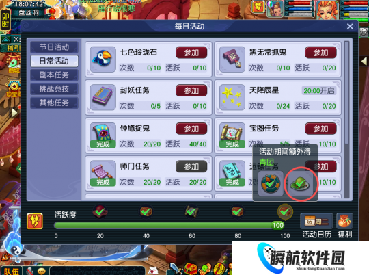 活动期间,≥30级的少侠活跃度达到100时可随机获得一种口味的青团。