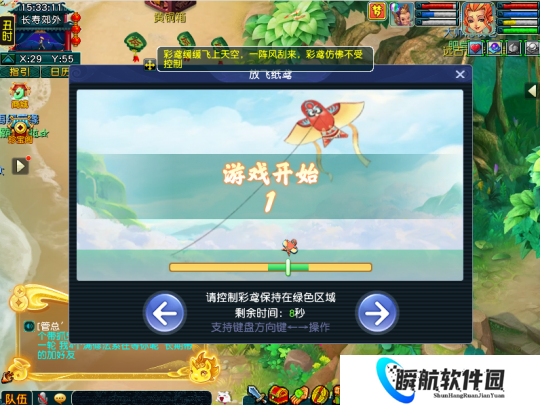 第一次放彩鸢可以试玩小游戏,使用键盘的左右键控制彩鸢,让其在剩余时间结束的时候停在绿**域即可。