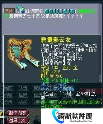 昨夜,一位少侠在鉴定装备时,意外收获一件130级无级别水清女衣。单看属性,虽然基础防御为国标水平,但只要耐心熔炼,仍可提升相当于数锻月亮石的抗性。这件女衣不仅附带双加属性,更具备X9封系梦寐以求的顶尖双蓝字组合,预计将获得一份不菲的报价。