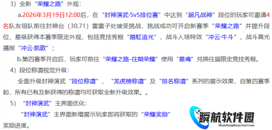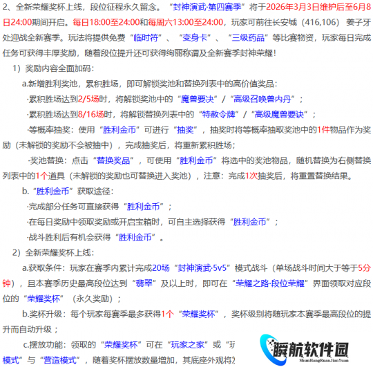 本周具体维护:3群雄逐鹿第五季开启,3月3日期间开启报名,3月16日报名结束,天元组、天启组、天科组、神威组、勇武组、精锐组每个组别都有PK。封神演武第四赛季将开启,封神演武奖励也比较不错,适合PK大佬,如今梦幻的主题就是PK玩法。
