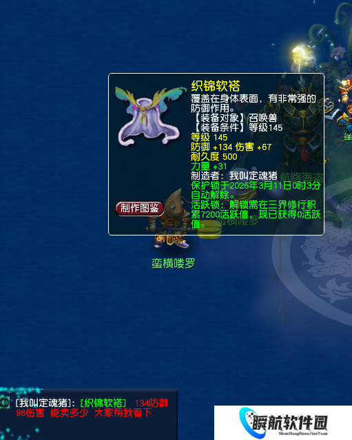 有玩家发传音展示自己的逆天运气——刚炸出一件145级宝宝装备,伤害高达98!