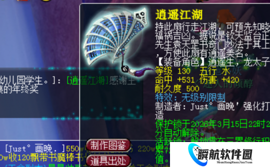 有玩家在传音中展示了自己鉴定出的130级无级别扇子:命中531、伤害420,妥妥喜提年终奖。