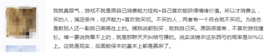 另一玩家表示这完全是以自己的穷消费观去吐槽那些买锦衣的玩家,就像他出门嘲笑别人开跑车,非要说跑车消耗的油费都够吃好多包子了。