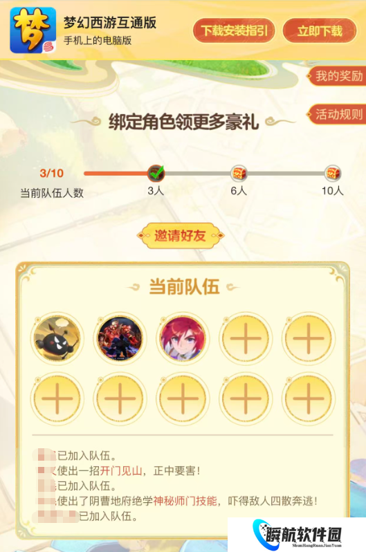 活动期间,少侠可在游戏中点击左上角的【萌娃集结】按钮,再点击页面右下角的【邀请加入】,弹出二维码后用手机扫码进入小程序界面,完成微信授权登录即可组成小队,届时能产生专属地址链接,邀请好友参加。